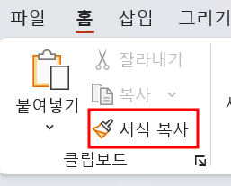 PowerPoint에서 서식을 복사하고 붙여넣는 방법은 다음과 같습니다: